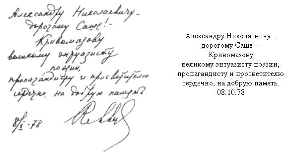 В этом автографе В.Левика, неизвестно к кому обращенному,